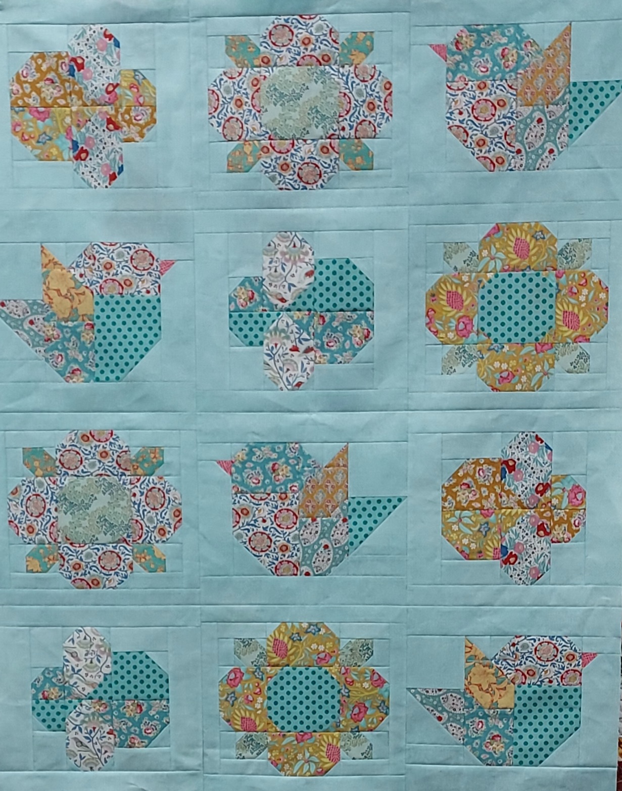 Kit includes fabrics for top (Tilda fabrics) and background, plus binding.