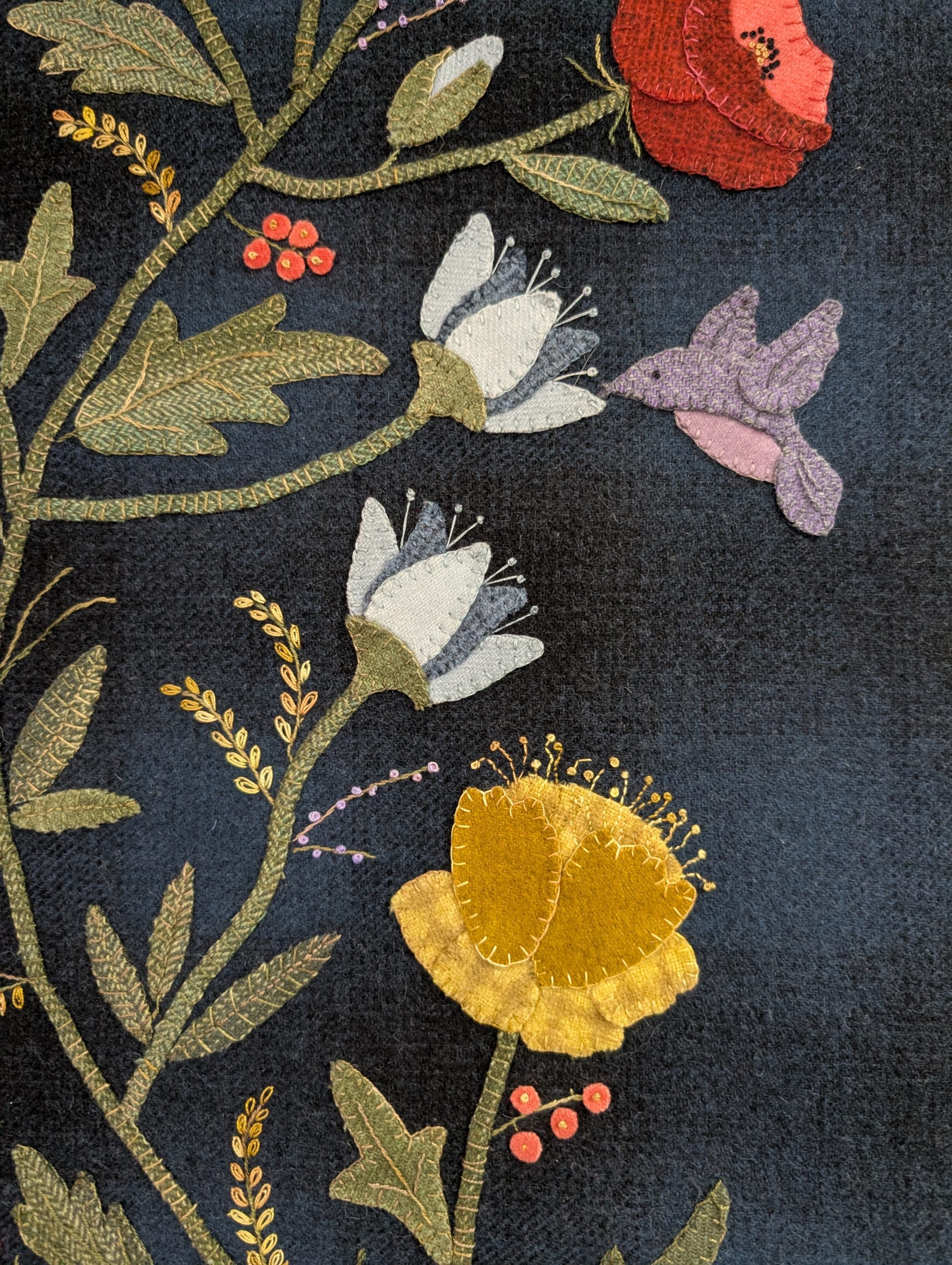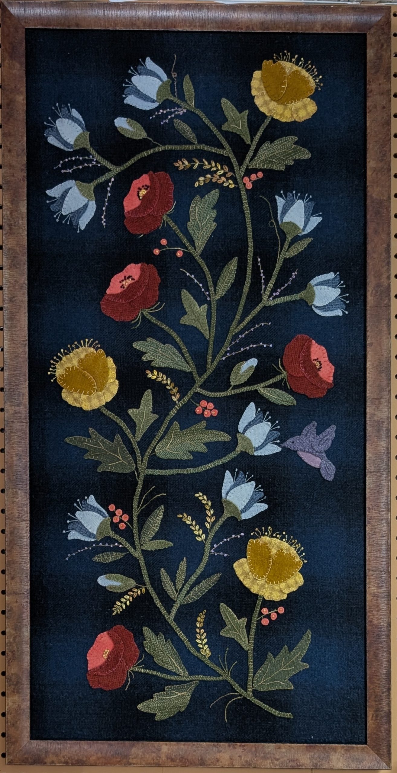 Kit includes pattern plus hand-dyes or prewashed wool for background and appliques.