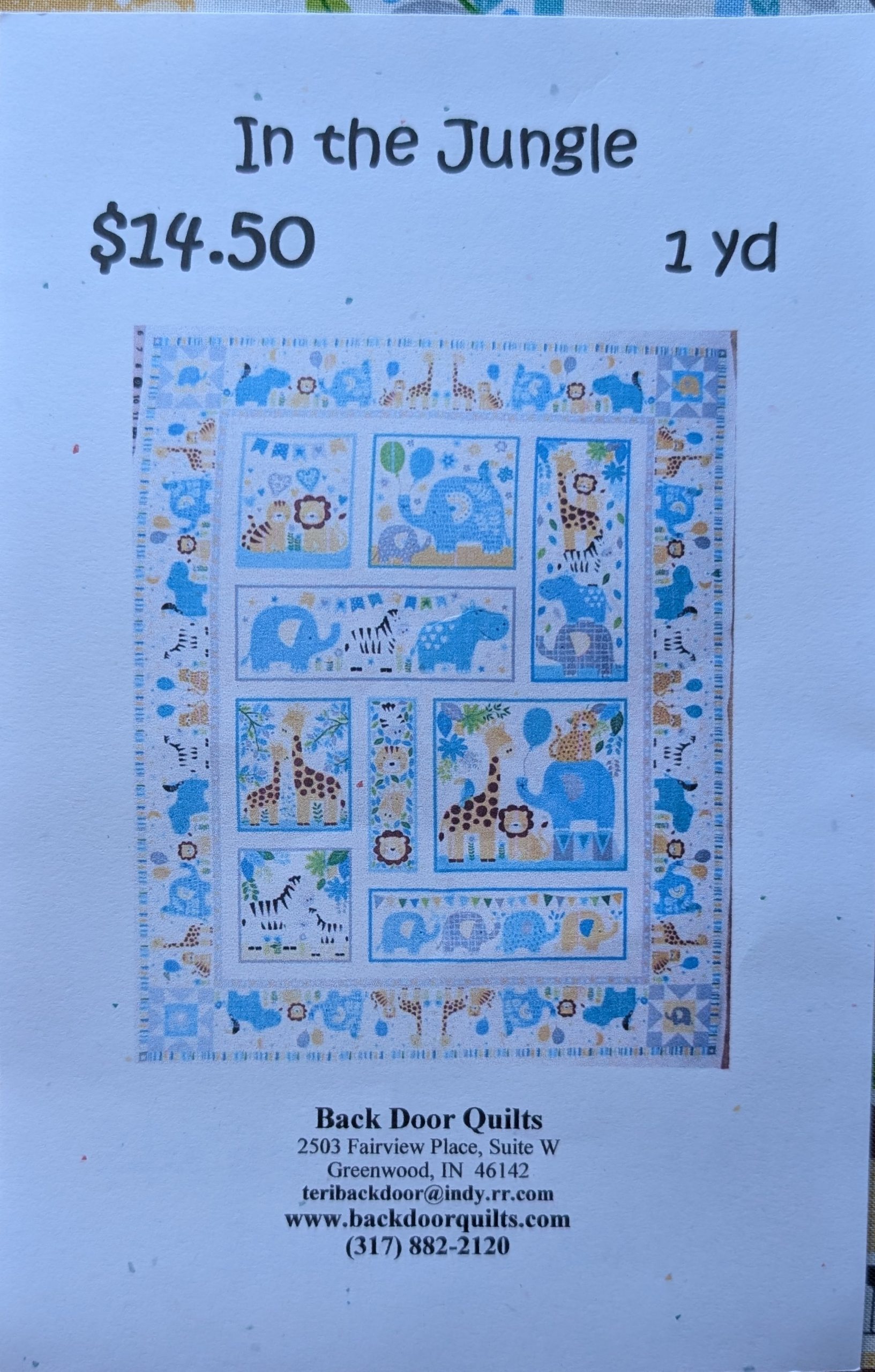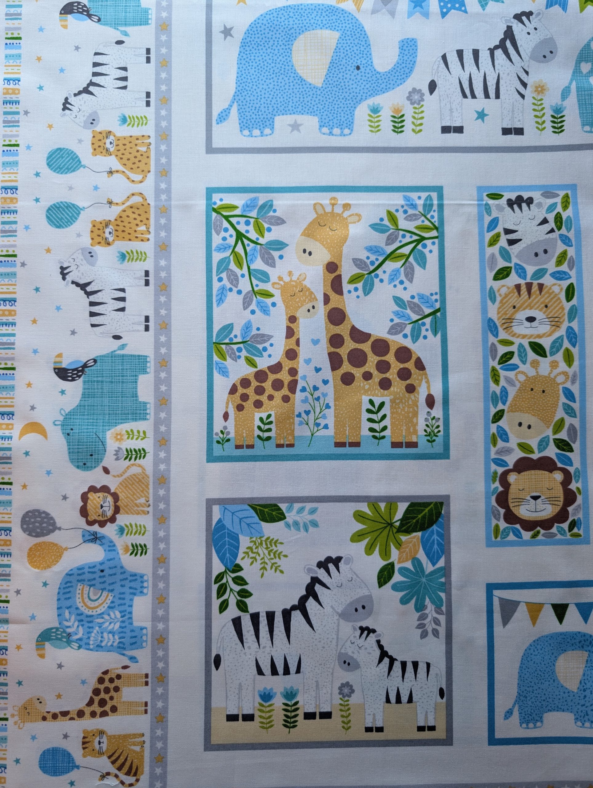 This cute panel features all of your favorite jungle animals and looks like a pieced quilt
