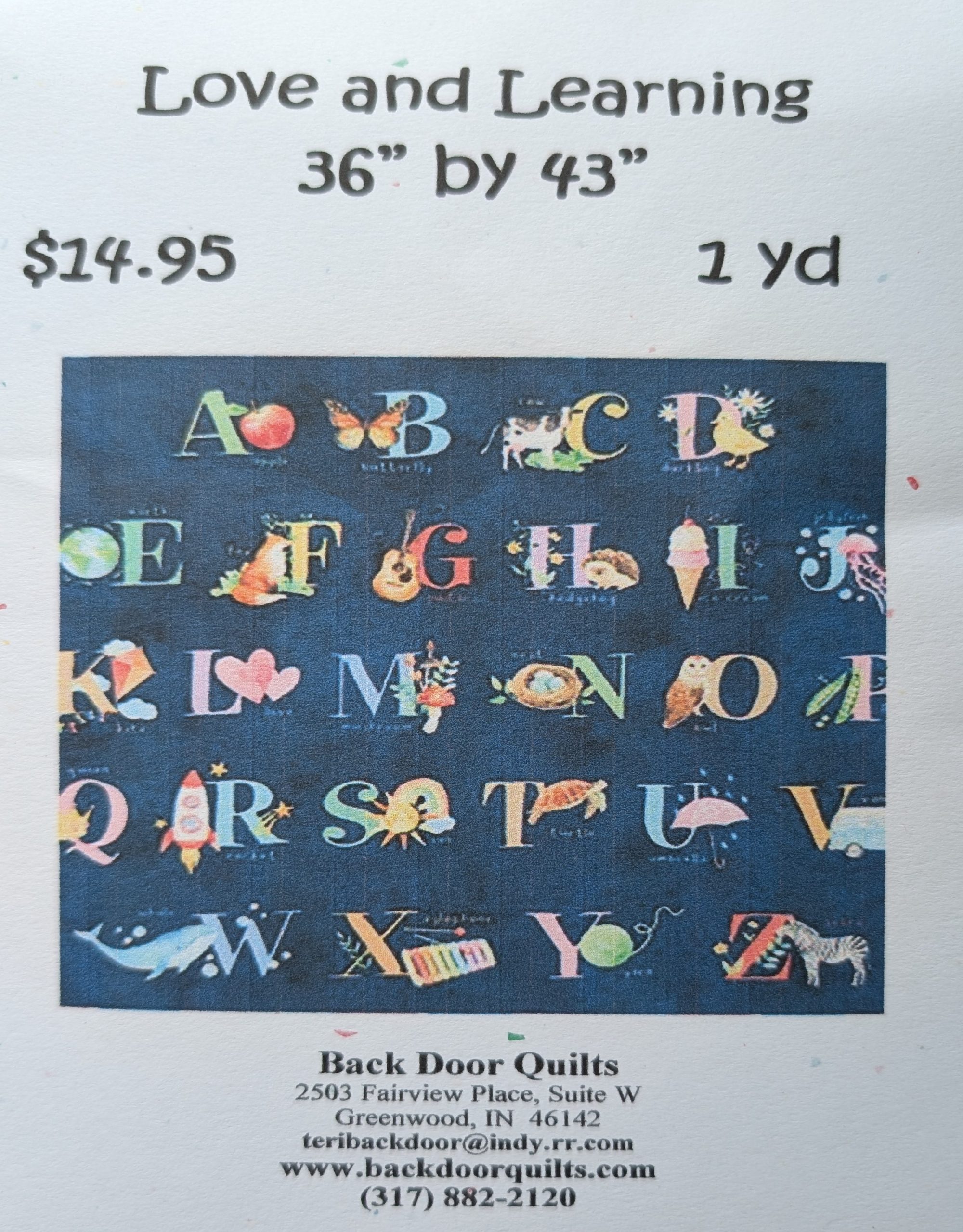 This alphabetical baby panel comes in two colorways (see white in separate listing)
