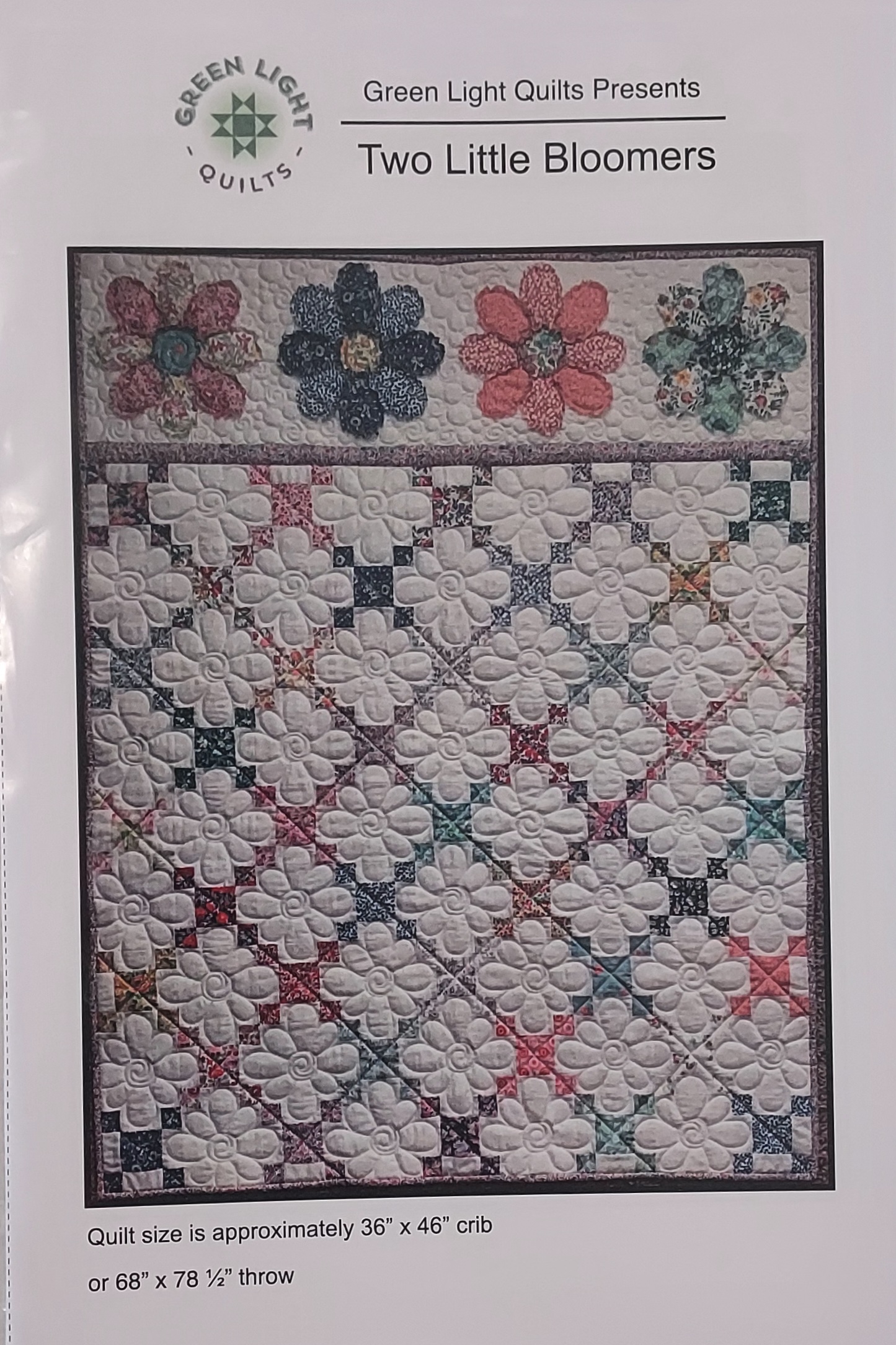 Pattern for quilt from Green Light Quilts in two sizes: crib 36″ x 46″ or throw 68″ x 78-1/2″